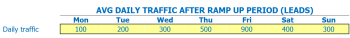 Assuming a six-month ramp-up period, the average daily traffic-in for a new interior design store should be around 50 visitors per day during the week. However, this number may increase on weekends and holidays due to increased leisure time and shopping activities. Therefore, it is important to track these fluctuations over time and adjust the financial model accordingly.
