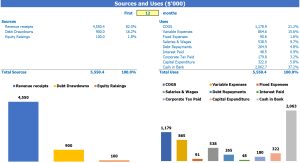 Sources and uses of funds within the financial model in Excel for Interior Design provides users with an organized summary of where capital will come from sources and how that capital will be spent in uses.